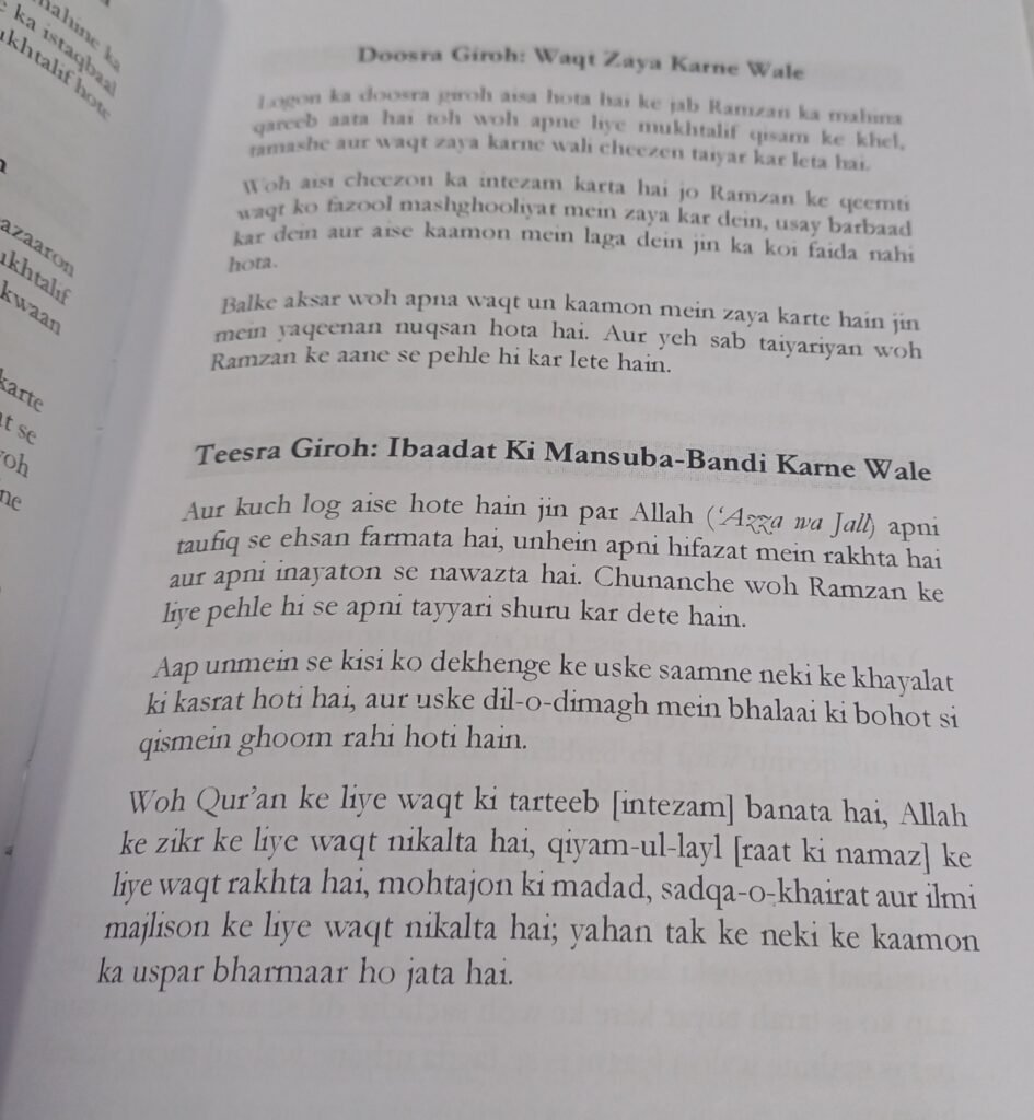 Print : Original Print Author : Shaikh Maqbool Ahmad Salafi Publisher : Ad-Daar-ul-Asariyah Language : Roman-Urdu Binding : Paperback SKU: IslamHouse-3932 Categories: Ramadhan
